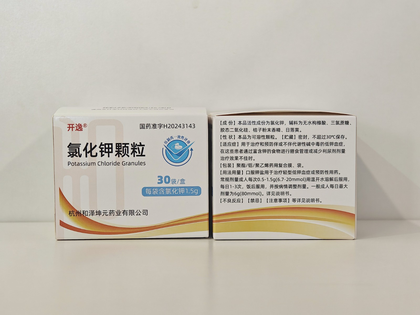 【规格】每袋含氯化钾1.5g