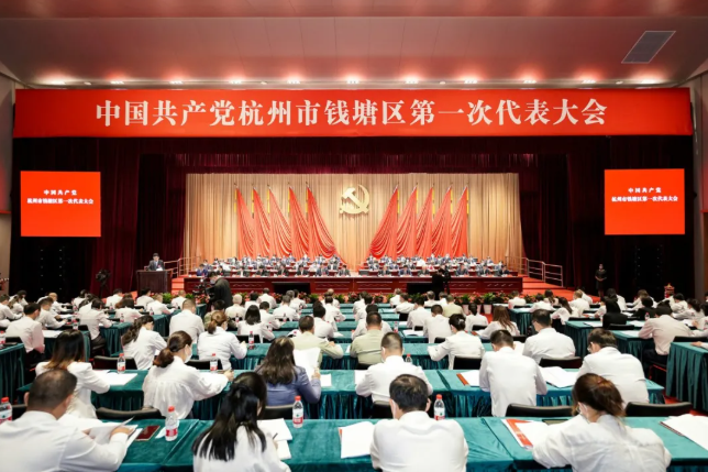 6月8日-6月11日,为期3.5天的中国共产党杭州市钱塘区第一次代表大会圆满举行。大会高举习近平新时代中国特色社会主义思想伟大旗帜,深入贯彻习近平总书记考察浙江、杭州重要讲话精神,全面落实党的十九届五中全会、省委十四届八次全会和市委十二届十一次全会精神,回顾总结工作,明确今后五年的目标任务,动员全区各级党组织、党员干部和人民群众,高水平打造“智涌钱塘·现代星城”,加快建设现代化国际化一流新区,奋力谱写“重要窗口”的钱塘篇章。