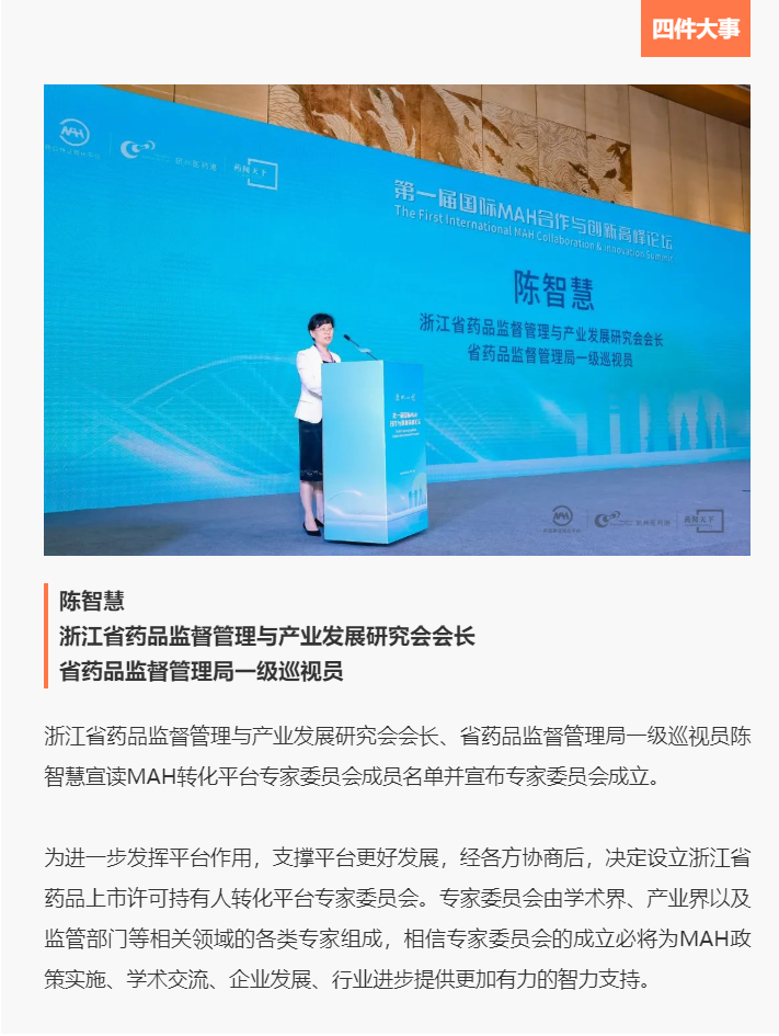 MAH制度的发展离不开专家智库的建言、企业的实践对接、人才的集聚交流以及数据的共享融通。此次论坛开启了四件事关日后行业发展的重要事件。